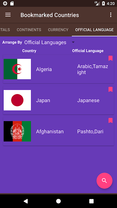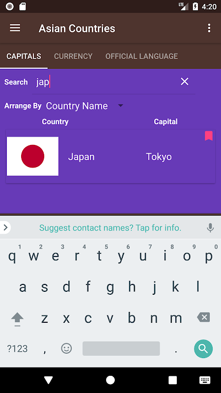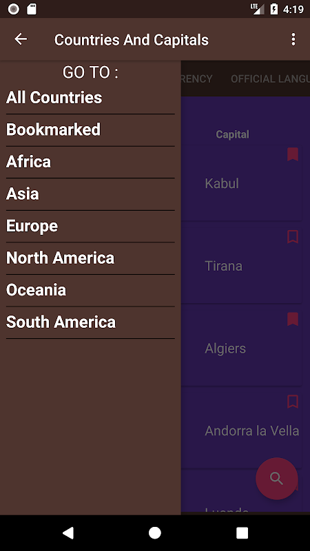 The App has list of capitals of all the country in the world , can be easily searched using search bar. Results can be sorted by country name or capital name .