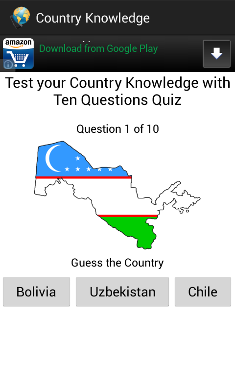 Country Knowledge app help you recognized geographical shapes and boundaries of most countries on the map.