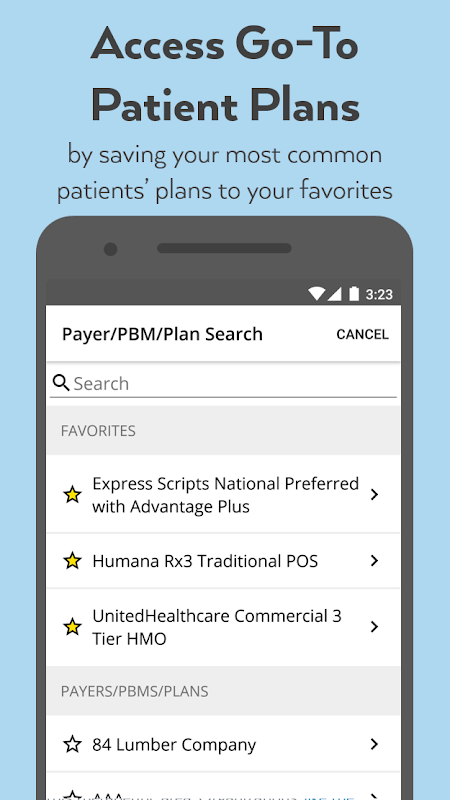 • Quickly search by health plan or PBM name