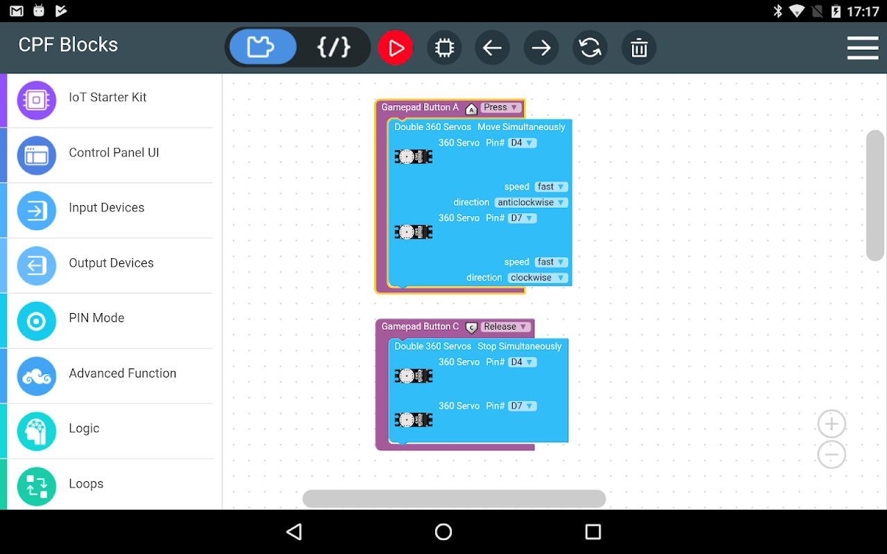 This APP is used to control Arduino Leonardo via a simple drag and drop blocks