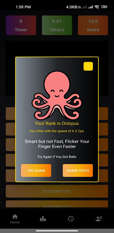 CPS Test (Clicks per second) is a gaming app specialized in developing, and improving user's clicking speed.