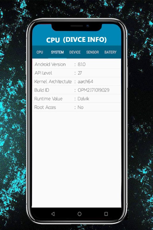 This is an android version of CPU information ,CPU tells you about system information.