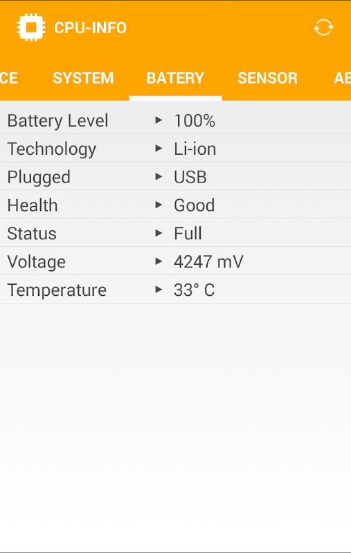 CPU-INFO is an application that show information about your phone, like CPU, system, device, battery, and sensors.