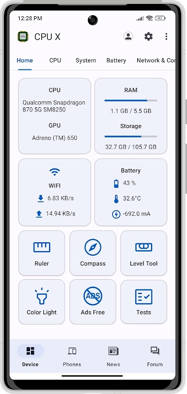 CPU X shows complete information about devices like processor, cores, speed, model, RAM, camera, sensors etc. See most detailed specifications of other Android smartphones.