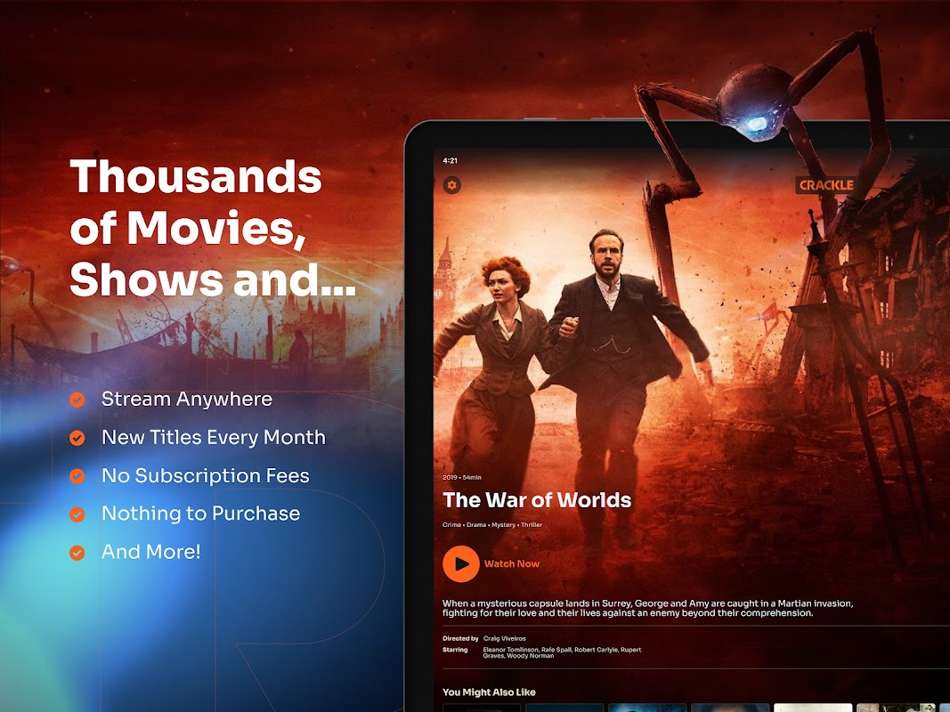Explore genres like Action, Comedy, Crime, Drama, Horror, Thrillers, Black Entertainment, Westerns, and Classic TV. Crackle is also the #1 free destination for the very best British content – including smash-hits like Sherlock, Taboo, Ripper Street, and more. Find fresh hits, discover new favorite shows, and reconnect with all-time classics.