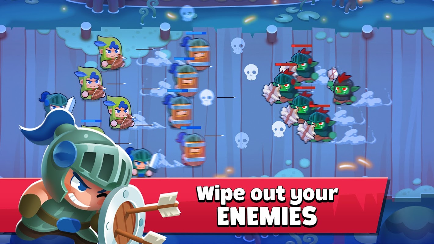 - Arm your soldiers and watch them crush their enemies.