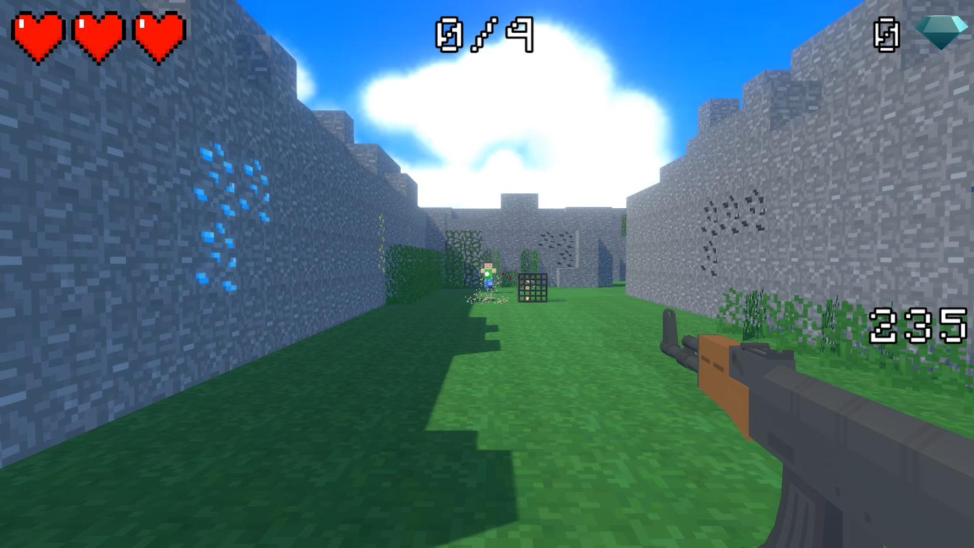 Physics-based FPS with voxel art. Battle enemies, earn diamonds, unlock weapons!