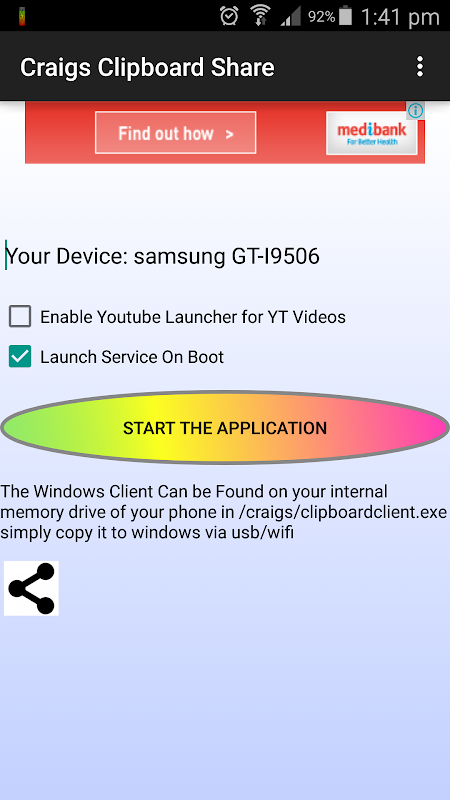 Shares text and youtube videos between Android Devices AND Windows!