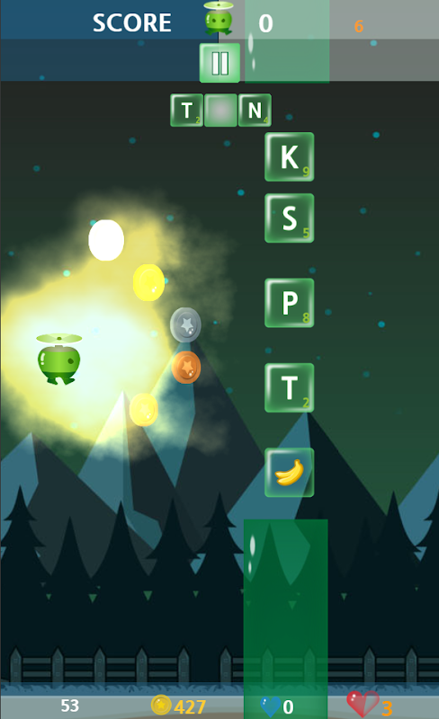 The player adjusts the 'Heli-Newton' and collides with the alphabetical blocks listed in the column. You have to choose the correct spelling that makes up the word and you must collide.