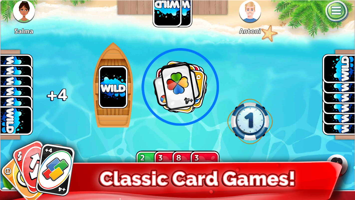 You can go wild in this virtual card game as you build a paradise island, unlock exciting new maps, and make your way to the leaderboard! Download now to enjoy a card party with uno friends and family online or offline. Be the ultimate Crazy 8 hero!
