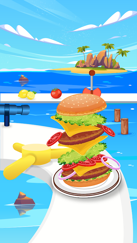 Stack the burger, try to keep it as high as you can without falling! Make the Tower block or Stack of your burger as high as much possible to the sky.As more levels complete and bigger burger you make, the new items and new ingredient will be unlocked to make more yummy and delicious burger😋.