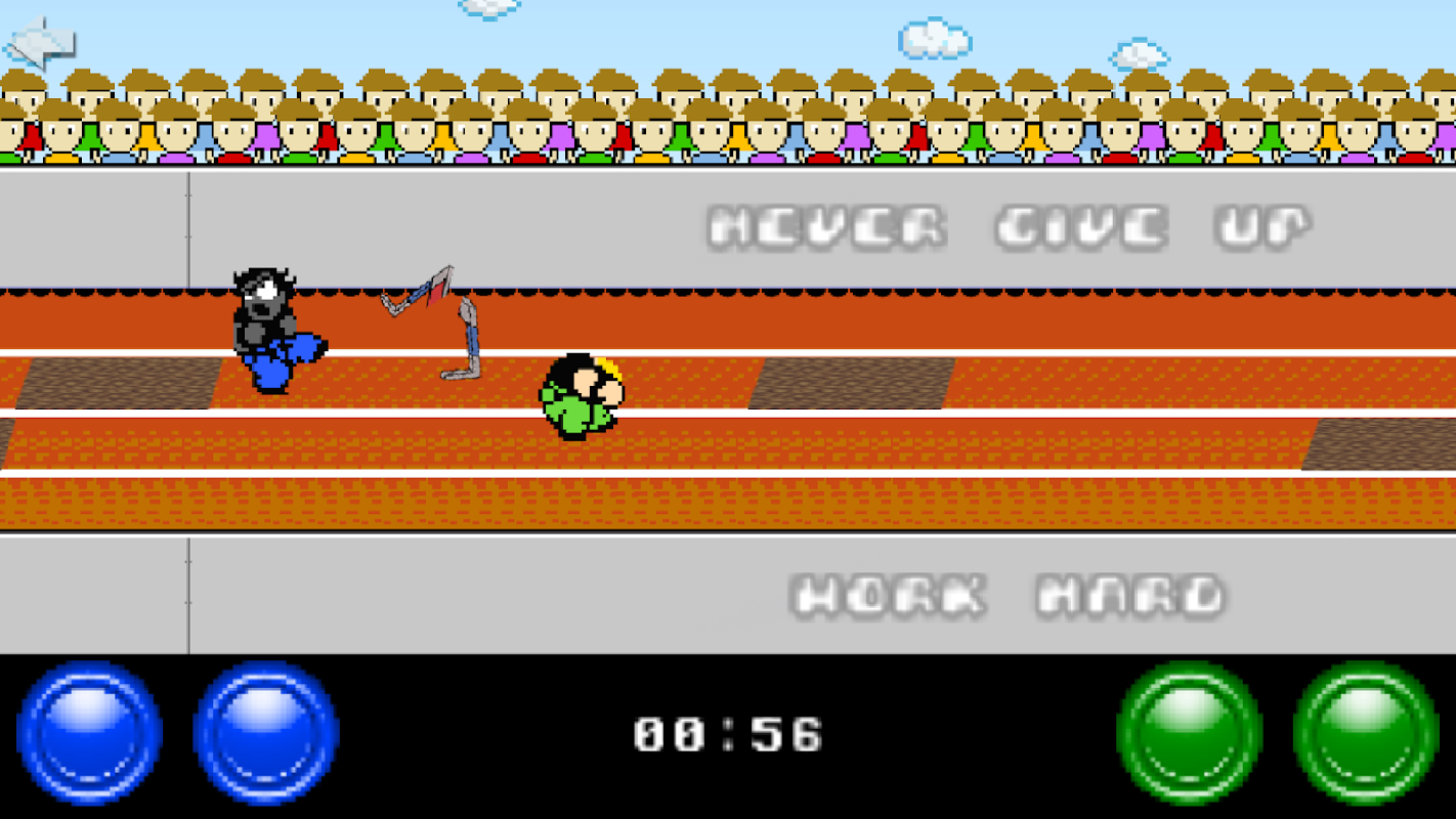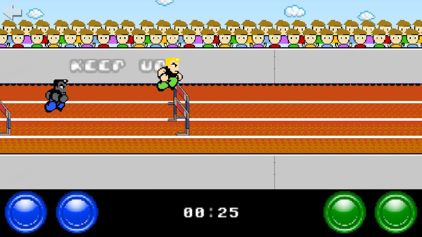 Hilarious and easy to learn two player game on a single screen! Race against your friend in a fast-paced hurdle game.