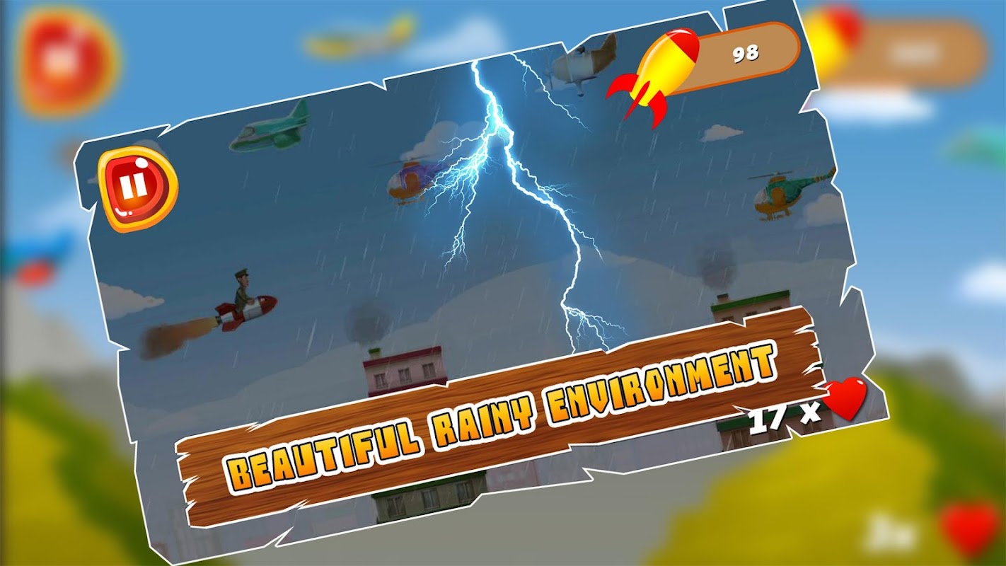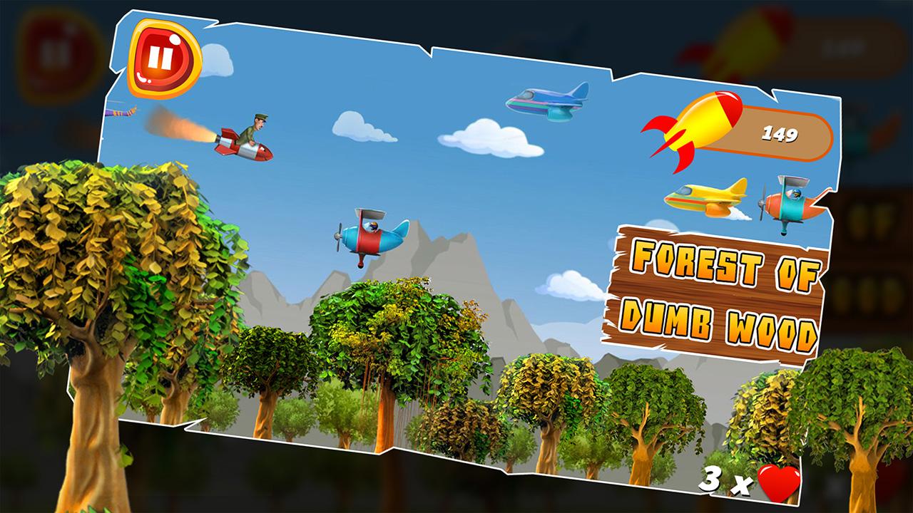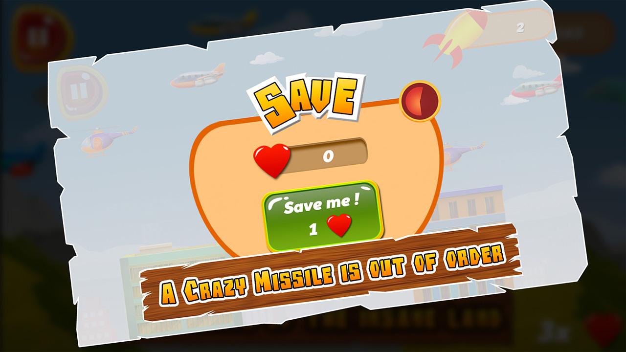 Like any other day, General Mad Bert was sleeping on duty. He accidentally pressed a button on his remote and his missile has gone haywire because of this. Confused as always, he didn’t think of anything else but to jump on it. Help this poor guy by guiding him through the heavy air traffic.