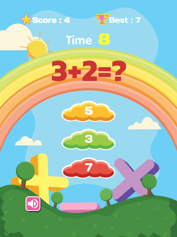 Math games are designed to think fast. It can be downloaded free. It’s the game for children to calculate the numbers quickly and be able to speed calculation in limit time. They can count numbers and practice how to plus with pleasure to strengthen their knowledge of math exercises. We have a selection of many fun games to improve preschool and early childhood brain’s development. They can practice how to add, minus, multiply and divide in variety exercises with beautiful illustrations.