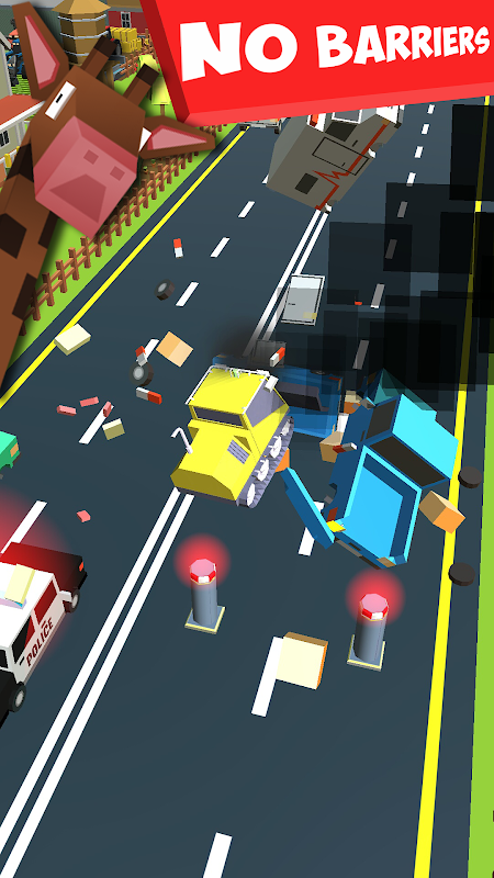 Crazy Road offers a choice of seven locations and many obstacles and nice bonuses. In the game you will meet on the road a variety of cars. Feel like a racer and make the cops crash into them. The further you go, the more difficult the game will become. The race will accelerate, and the number of obstacles will increase.