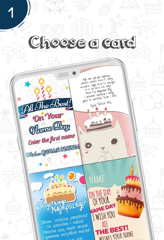 1. Choose appearance for a card about NameDay from among 30 designs.