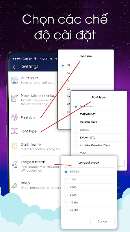 - Easily adjust font size, font style, theme ...