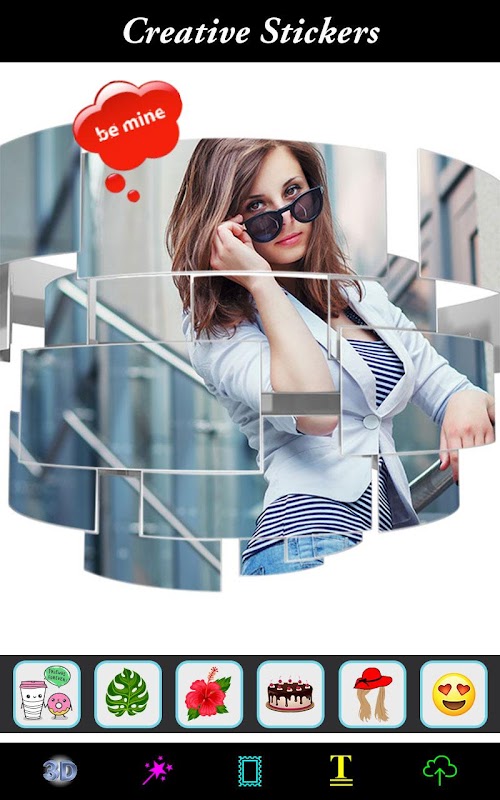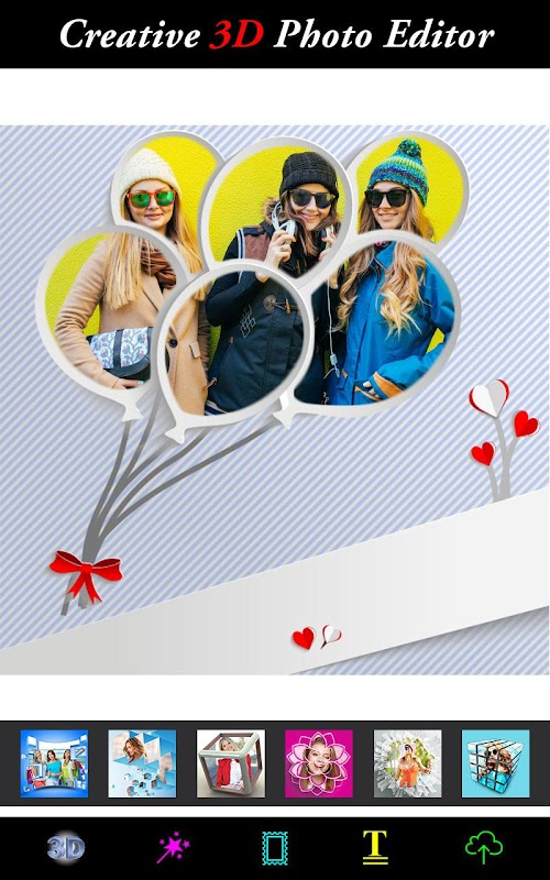 Creative 3D Photo Editor is a Photo Frames app which will give you a 3D look to your photos. Want to try 3D effects like dancing on phone,falling cubes and in flower petals, try our modern 3D Photo Editor app for these special 3D effects to your photos for Instagram!