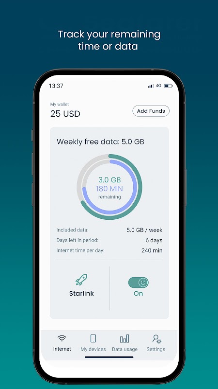 See how much data or time you’ve used, how much is left, and get daily