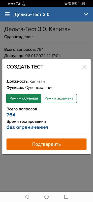 - in the exam mode, passing the test for time (imitation of the exam in the IWC in the port) or without time limit