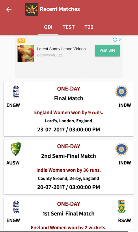 • Schedules for all Upcoming matches