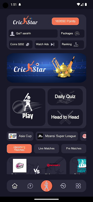CrickStar isn't just about watching cricket – it's about being an active part of the game. Whether you're a seasoned fan or just starting your cricket journey, our app offers a unique blend of excitement and engagement. Make every match more thrilling by making guesses , testing your cricket IQ with challenging trivia, and competing with friends to climb the leaderboard.