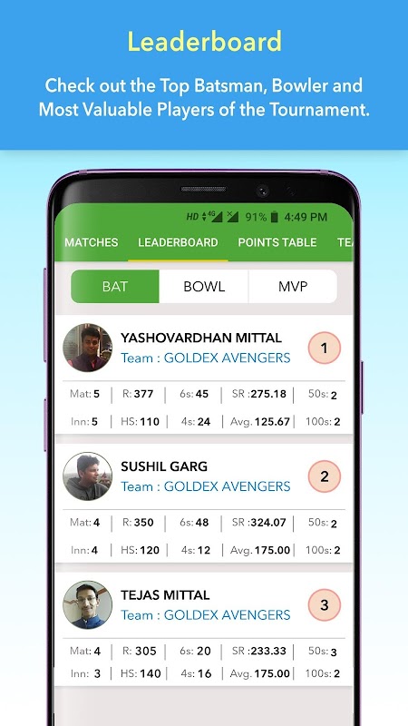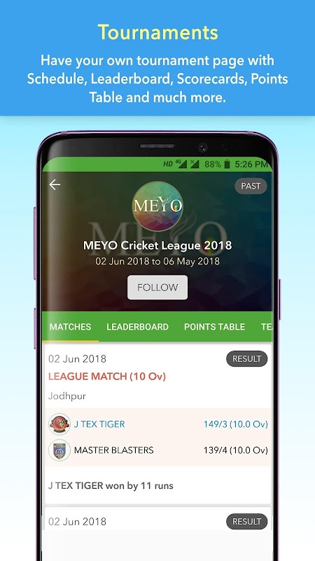 You can use CricSync Cricket Scoring App to record and maintain your college cricket tournament, corporate cricket leagues, school cricket tournaments and any other cricket match or tournament.