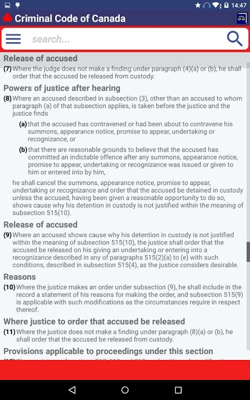 Updated with statute data from the Government of Canada's Justice Laws website*, this legal resource makes the Criminal Code of Canada available in an offline, searchable, and easy to use application for your phone or tablet.