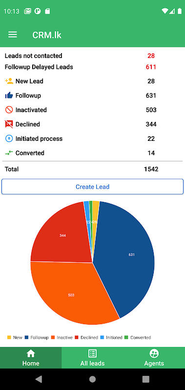And CRM.lk provides a summary of the leads. Agents can view lead summary of their own leads and admin users can all leads summary of their team. Also admin users can monitor their agent individually.