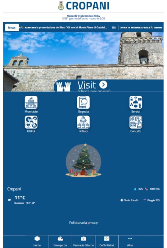 All contents within the app regarding the Municipality of Cropani have been authorized and come from the institutional website: https://www.comune.cropani.cz.it/.
