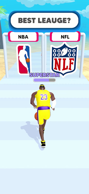 You have a long path ahead of you. Beat your rivals one by one with your success in trivia questions and basketball skills. Become the star of the league and keep running to reach the championship rings awaiting you in the finals.