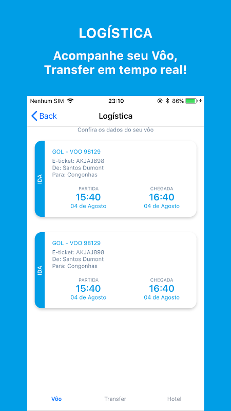 Nosso aplicativo possui todas as informações necessárias para que você acompanhe e não perca nenhuma informação sobre o evento. Algumas informações essenciais como agenda do evento, logística (vôos, hospedagem e transfer), galeria de imagens e vídeos em destaque podem ser utilizadas para melhorar sua experiência durante o evento.