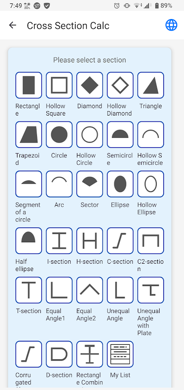 - Representative cross-sectional shapes are displayed as icons, allowing you to select the desired shape for calculation with just a tap.