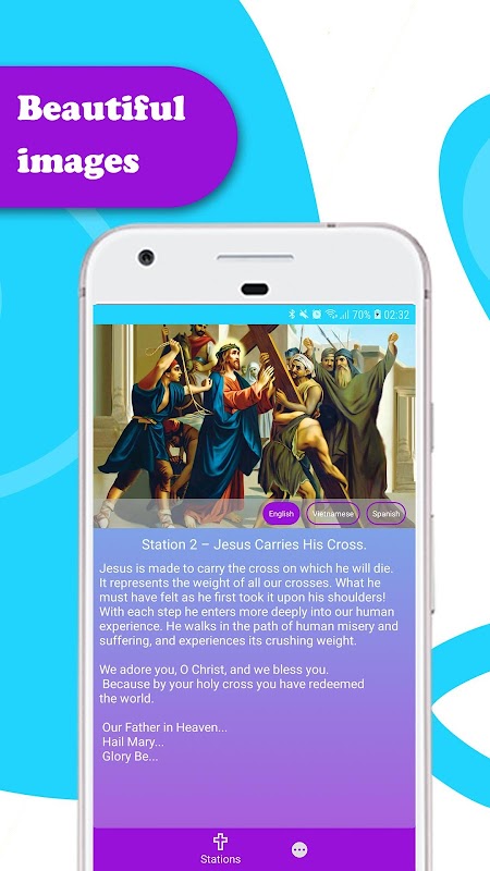 This app contains the three main versions of the Way of the Cross (also known as the Stations of the Cross or Via Crucis or Via Dolorosa or simply The Way). The Holy See did not give a mandatory instruction on how to pray this, it being a devotion and not a liturgical activity, thus the many versions of this devotion. With this app, no matter where you are in the world, you could get a version you can pray which might be applicable there, based on the stations. The three main versions are: