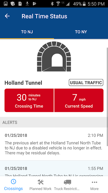 CrossingTime provides you with real-time traffic conditions at all bridge and tunnel crossings operated by The Port Authority of New York and New Jersey, allowing you to make decisions about your trip.