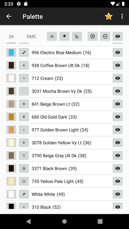 This tool allows you to create your own cross stitch pattern from image or create the blank one using popular flosses color palettes (DMC, Anchor, Gamma and more in Pro version). You are also able to draw pixel art designs. You can edit pattern, add or delete colors, fill single stitches or areas, draw geometrical figures and lines, you are able to use backstitches and halfstitches. It is possible to control color visibility and mark completed areas to provide convinient stitching from your device screen. If you want to print created pattern, you are able to export it to image or pdf-file.