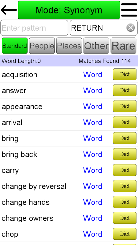 This app will help you solve English crosswords and other similar word games. The application uses the letters you already know to find a list of possible answers.