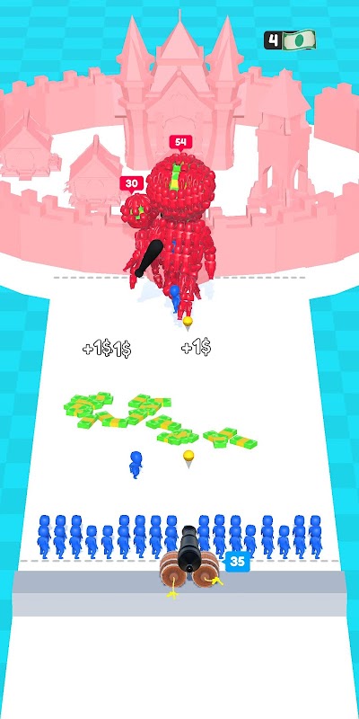 Shoot the giants. Collect bonuses and add warriors to your group. Destroy the enemy tower or bosses.