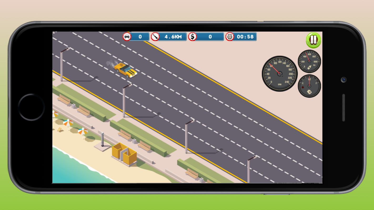 Drive your car in the huge traffic to avoid different incoming cars so you can get the coins as score and can complete the levels and use powerups to continue your game!