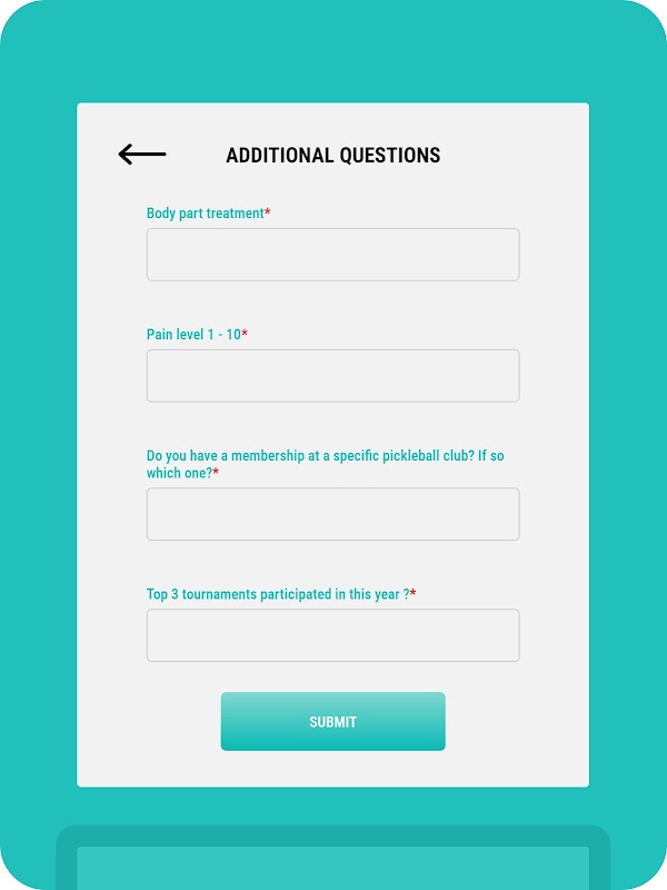 o Multiple Sport Selection: After submitting, clients can choose to fill out a form for an additional sport if desired. If not, the app returns to the Terms and Conditions page, ready for the next client.