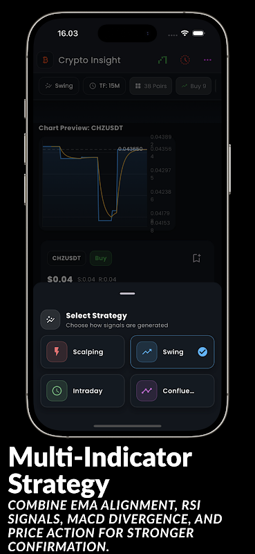 This isn’t just another crypto price tracker. Crypto Insight acts like your personal market analyst, blending advanced technical indicators like EMA, RSI, MACD, and Support & Resistance levels into clear, actionable insights. Whether you’re into Scalping, Swing Trading, or long-term position building, our app adapts to your trading style.