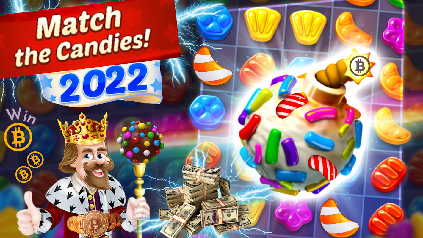 Switch and match Candies in this tricky puzzle adventure to progress to the next level for that sweet winning feeling! Solve crypto puzzles with quick thinking and smart moves, and be rewarded with bitcoins rainbow-colored cascades and colored candy combos!