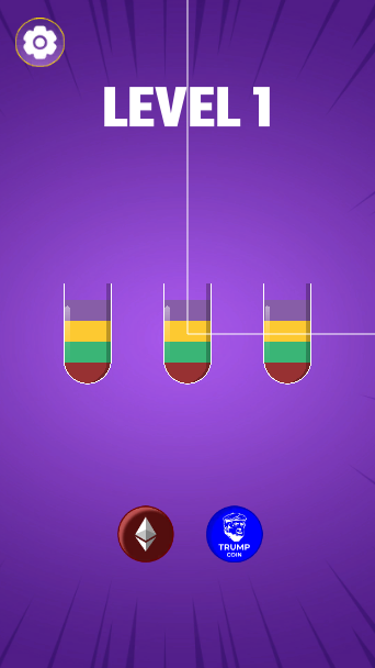 Crypto Sort Puzzle is a straightforward water-sort game with a crypto twist. Your goal is simple: pour colored crypto coins between flasks so that each flask holds coins of only one color.