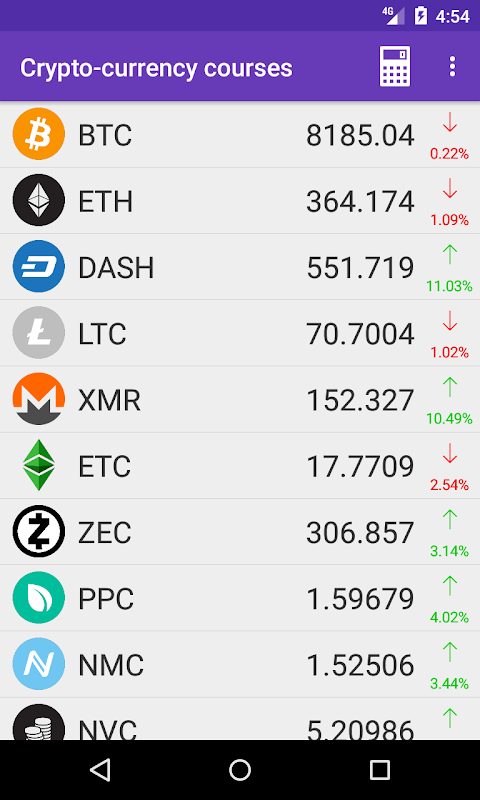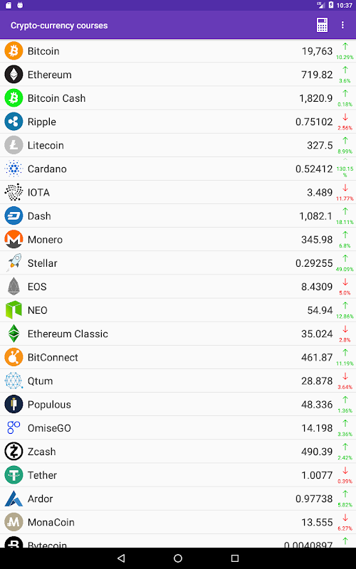 The application displays the current cryptocurrencies exchange rates of bitcoin, litecoin, dashcoin, ethereum and other crypto-currencies from the coinmarketcap website.