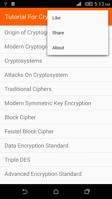 Orange Tutorials brings for you handy and best Tutorial For Cryptography. Tutorial For Cryptography App is user friendly, light weight, an easy-to-use for learning. The lessons in App are easy and effective. The app has following features:
