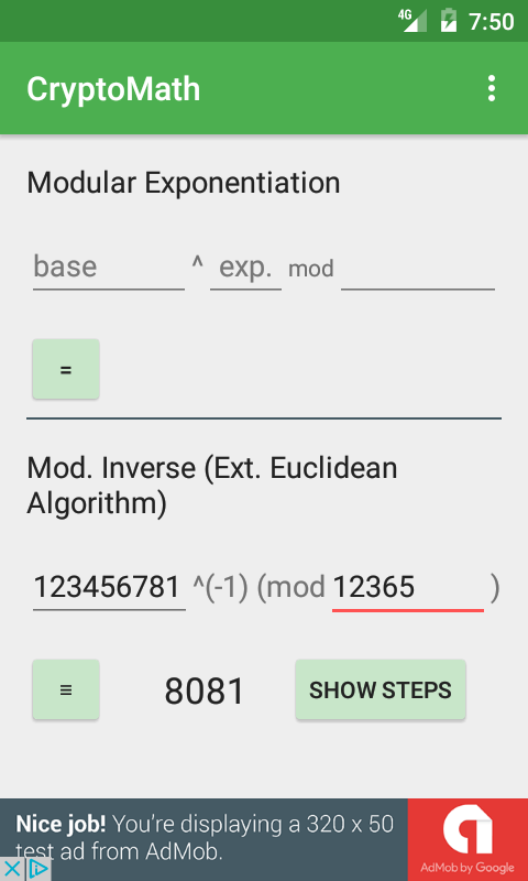 Modular arithmetic tool for cryptographic-related university subjects.