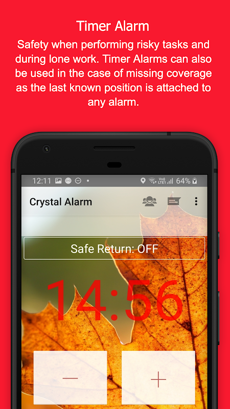 Crystal Alarm offers a personal alarm as an app for professional use. Quickly send alarms to colleagues or to an alarm central by the push of a button.