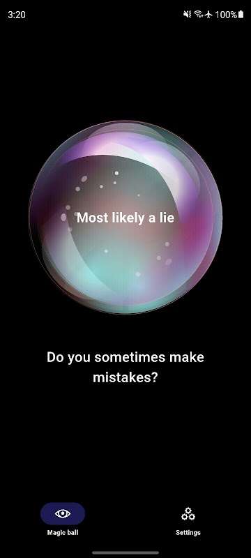 Questions can be asked endlessly. The app ball luck will make you feel like a powerful magician, arbiter of fate, psychic. The application ball mystic can and should be used in a company, it will be more fun. Play questions with friends, colleagues, family. This app ball fortune is made for fun so don't take it too seriously.