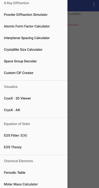 CrysX is a set of crystallographic tools available as apps / applications for Android devices. The tools are extremely handy for physics students, physicists and scientists working in the field of condensed matter physics.