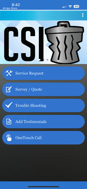 CSI, Compactor Systems Inc. compactor service app is used to schedule service requests, troubleshoot, or order new compactor systems for existing and future clients.